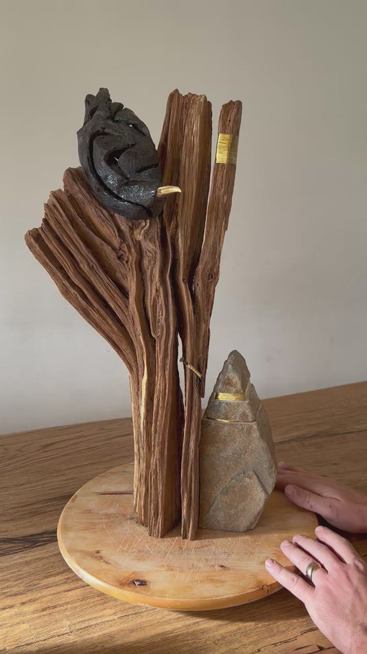 Boomklever op hout met steen en messing